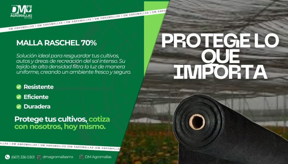 La Mallasombra Raschel 70 % cumple una función importante en los campos agrícolas o invernaderos. Es la herramienta ideal debido a que aporta sombra en distintos niveles que ayudan a potencializar los cultivos y a evitar que perezcan por la incidencia solar.